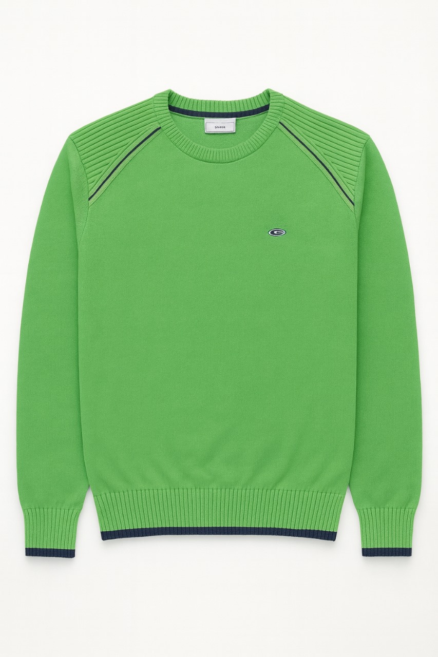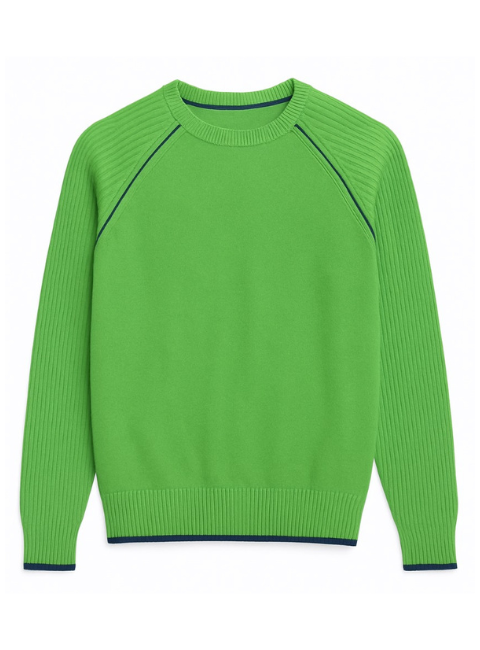 A premium ribbed knit sweater featuring clean white piping along the shoulders for a modern, stylish look. Soft, durable, and perfect for everyday wear with a refined finish.