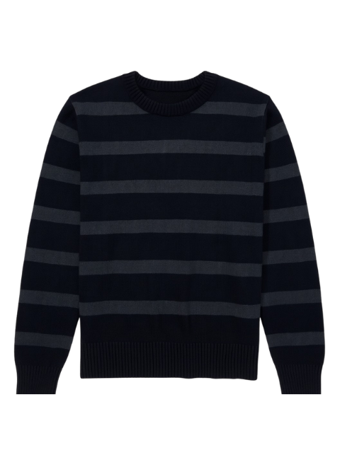 A soft, warm knitted sweater featuring bold horizontal stripes for a classic winter look. Designed for everyday comfort with ribbed cuffs and hem for a refined finish.
