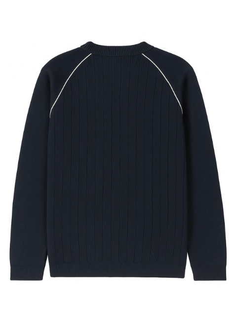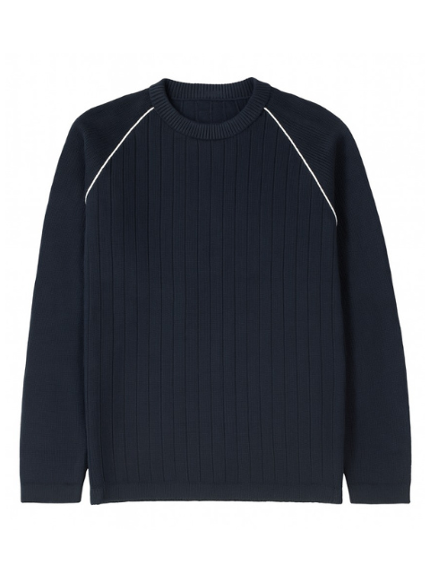 A premium ribbed knit sweater featuring clean white piping along the shoulders for a modern, stylish look. Soft, durable, and perfect for everyday wear with a refined finish.